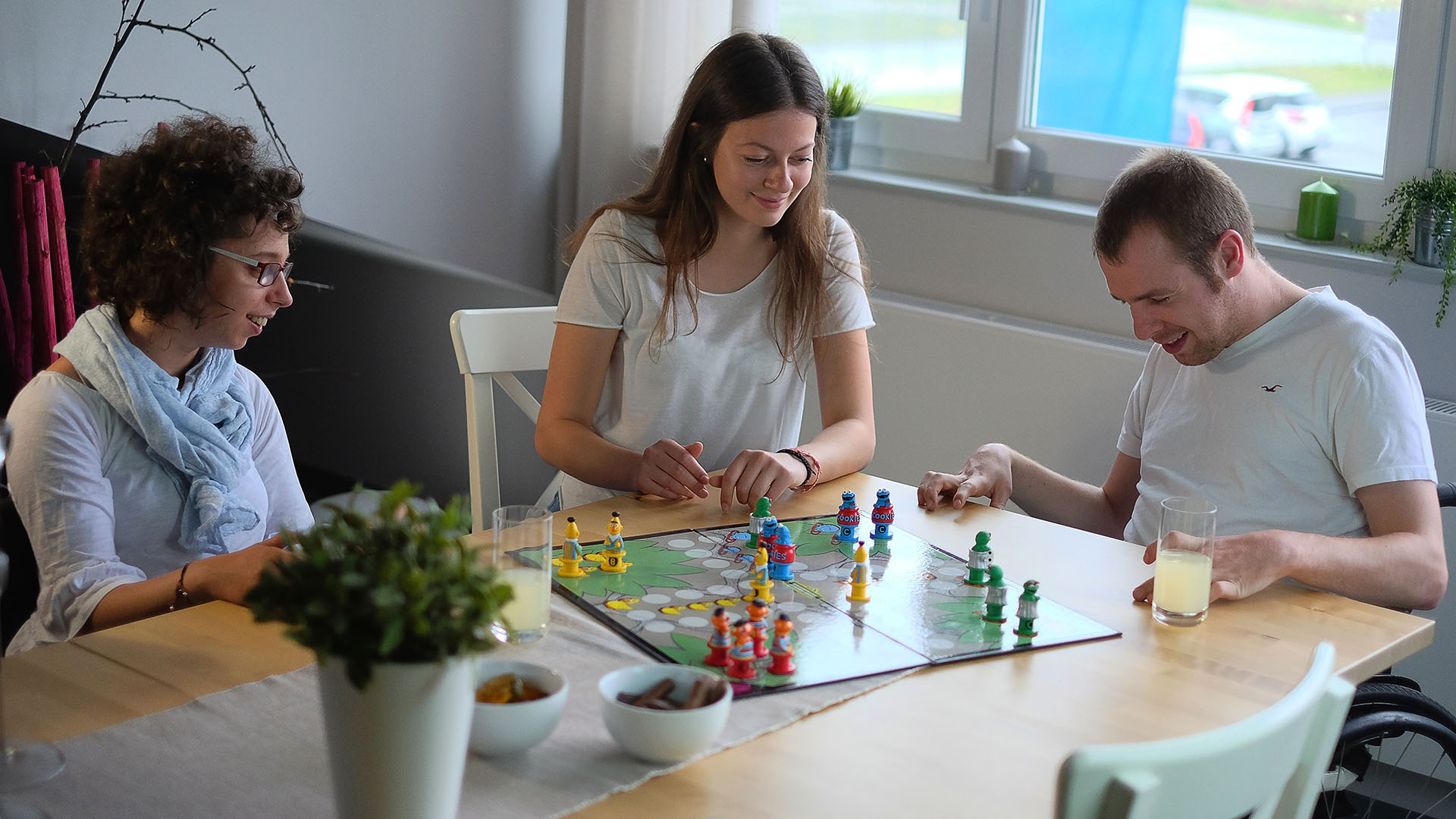 Das Motto und Ziel von Deutschlands erster Inklusions-WG mit Petö-Förderansatz lautet „Wir leben Inklusion“. Begegnungen auf Augenhöhe sind der Schlüssel für das Zusammenleben: Junge Erwachsene – egal ob sie eine Behinderung haben oder nicht – profitieren im alltäglichen Umgang als G E M E I N S C H A F T gleich mehrfach!